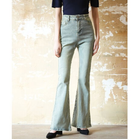 スラっとしたスリムフレアのシルエットでスタイルアップを叶えるハイウエストのストレッチデニムパンツです。