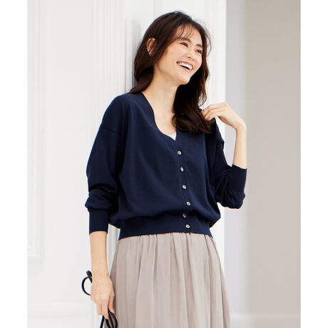 絶妙な丈感で合わせるアイテムを選ばない、サラッとした肌触りのVネックカーディガン