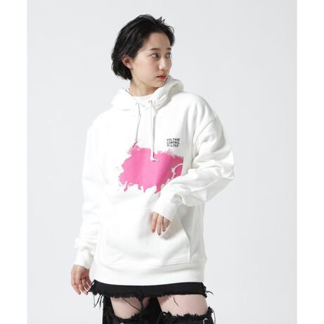 前身頃に大胆なプリントがあしらわれたオーバーパーカー。