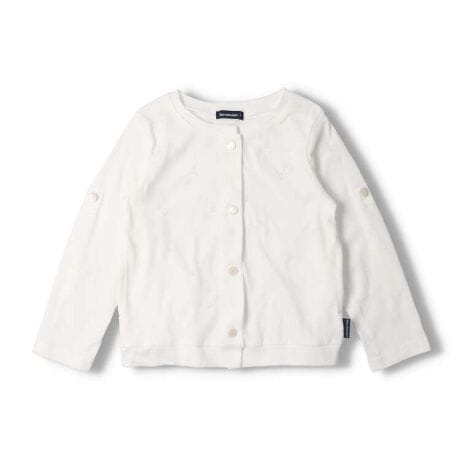 さくらんぼの透かし模様がポイント!袖はロールアップしてボタンで留めて着る事も出来ます。薄手の素材なので、夏の日焼け対策や冷房対策にも色々なシーンで活躍するアイテム。【アイテム】長袖 半袖 トップス シンプル ガーリー フェミニン カジュアル お洒落 オシャレ かわいい 可愛い 普段着 デイリーウェア お出かけ着 お外着 お外遊び着 子ども こども 女児 女の子 ガールズ キッズ ベビーサイズ トドラーサイズ 幼稚園 保育園 小学校 通園 通学 小学生 2023年夏物新作 丸高衣料 果物 フルーツ チェリー サクランボ さくらんぼ ホワイト 白色 ライトレッド 赤色 ターコイズブルー 青色 ムージョンジョン