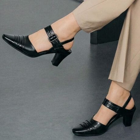 履くと足がすっきり見え、オフィススタイルにもフォーマルシーンにもぴったりの一足です。