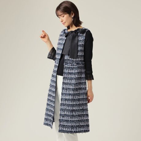前を開けてパンツを合わせれば、ジレとしても着用出来ます。