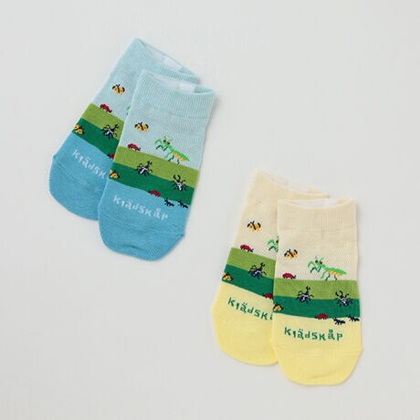 コーディネートのポイントにしたい昆虫柄のスニーカーインソックスです。通気性の良いメッシュ編みで汗ばむ日も快適なはき心地を実現。思わず足元を見たくなる個性たっぷりのデザインはお出かけスタイルのおしゃれ度をアップしてくれます。内側にはお名前を記入できるスペースを完備。SS、Sサイズは足裏にすべり止めプリントつきです。