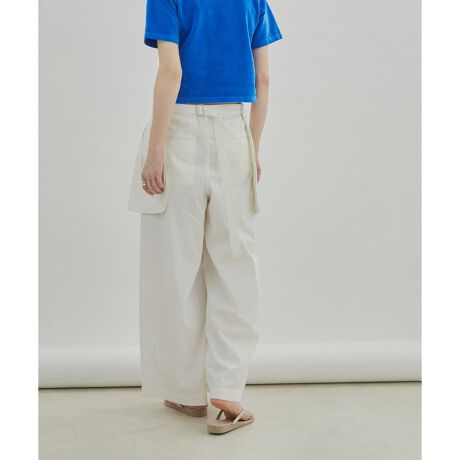 同素材のサロンベルトを巻くとカーゴパンツ/ワークパンツのような印象に変化するセットアップ対応アイテム。