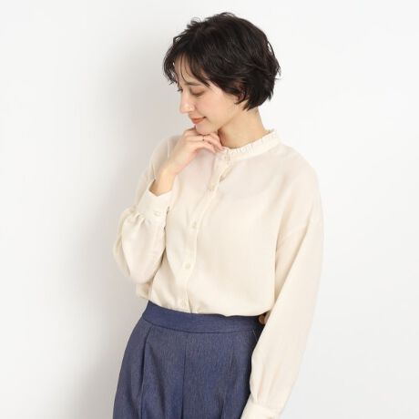 【優しい風合いの上品さ】スタンドプチフリル ブラウス