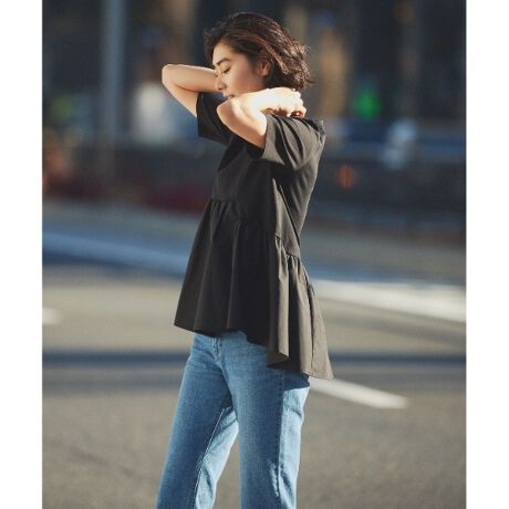 ・自然に腰にかかる丈感でボトムを選ばずスタイリングが可能で、フハク切替の贅沢なシルエットと上品な表情がスタイルを格上げ。