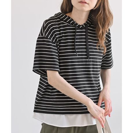 パーカー部分はコットンカットソー、裾部分はコットン布帛で爽やかにご着用いただけます。