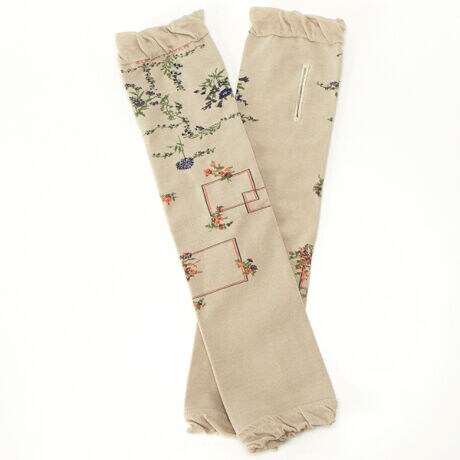 フラワーミックス柄のジャガード織と袖口のフリルがフェミニンなアームカバー。