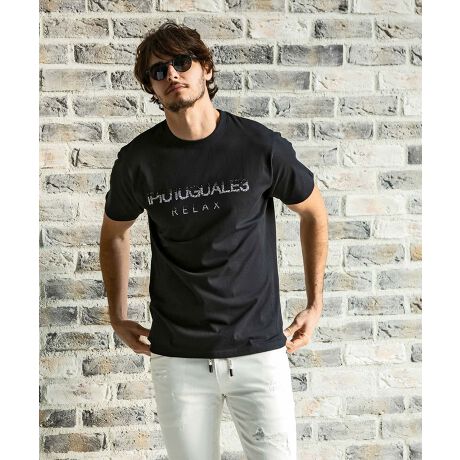 1PIU1UGUALE3 RELAX ランダムラインストーンロゴ半袖Tシャツ