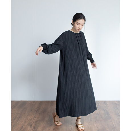 すっきりとしたシルエットでありながら体のラインを拾いにくい大人のロングワンピースに仕上げました。