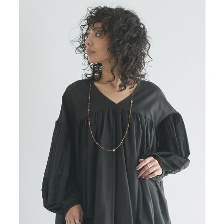 【Audrey and John Wad】インドコットンVネックギャザーブラウス -手洗い可-