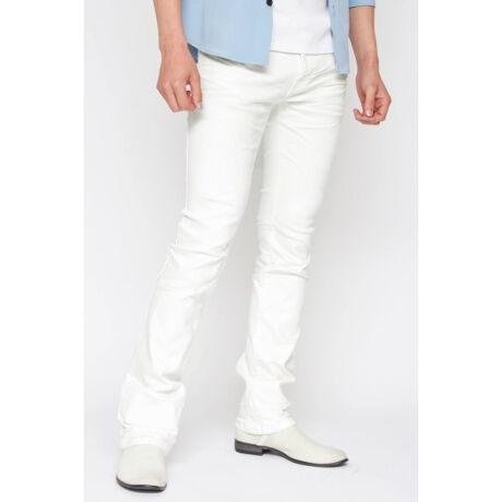 立体部分にはクリア箔を転写することで光沢感が生まれ、水の流れを表現しています。 裾付近から少しだけ広がったシューカットシルエット。5ポケット・フロントはZIP仕様。