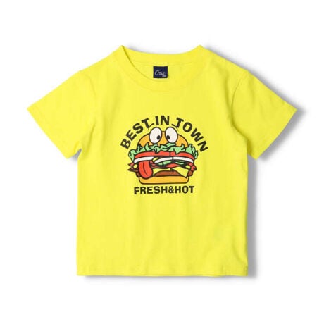 デイリー使いにオススメ!男の子も女の子もユニセックスで着られるジャンクフードモチーフのプリントTシャツ。ポテト、ハンバーガー、ホットドック、サンドイッチ、ピザのアメカジテイストのポップなプリントが可愛い!(ベビーサイズのみ肩ボタン仕様になります。)【アイテム】トップス カジュアル お洒落 オシャレ かっこいい かわいい 可愛い 普段着 デイリーウェア お出かけ着 お外着 お外遊び着 子ども服 こども服 男児 男の子 ボーイズ キッズ ベビーサイズ トドラーサイズ 幼稚園 保育園 小学校 通園 通学 小学生 2023年夏物新作 丸高衣料 半袖 ガールズ 女児 女の子 ホットドッグ サンドウィッチ ジャンクフード ブラック 黒色 イエロー 黄色 クレセント