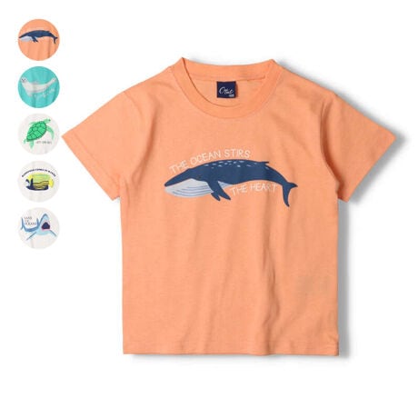 デイリー使いにオススメ!夏らしい海の生き物のくじら、アザラシ、カメ、サカナ、サメのプリント入りTシャツ。絵本から飛び出したような優しいタッチのプリントがポイント。(ベビーサイズのみ肩ボタン仕様になります。)【アイテム】トップス カジュアル お洒落 オシャレ かっこいい かわいい 可愛い 普段着 デイリーウェア お出かけ着 お外着 お外遊び着 子ども服 こども服 男児 男の子 ボーイズ キッズ ベビーサイズ トドラーサイズ 幼稚園 保育園 小学校 通園 通学 小学生 2023年夏物新作 丸高衣料 半袖 クジラ あざらし 亀 熱帯魚 さなか オレンジ グリーン 緑色 オフホワイト 白色 クレセント コットン100% 綿100%