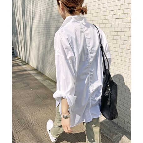 洗いざらしの雰囲気を表現する為、肩線と背中心にパッカリングを施しています。ゆったりしたサイズ感と、立体的でラフな雰囲気はさらっと着こなすだけでもこなれ感があります。