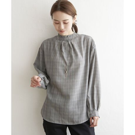 襟元にフリルが施された、前後で着用できる2WAY仕様のブラウスです。