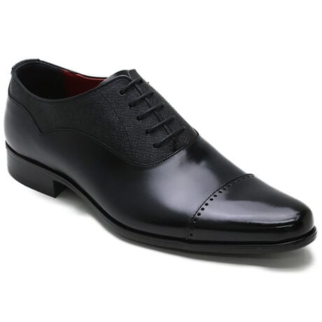 本革の表面に樹脂をコーティングしており、美しい光沢感に仕上げた一足。