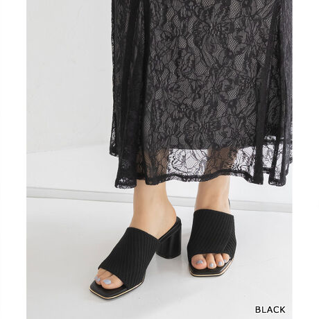 エッジの効いた切り替えデザインのニットミュールサンダル