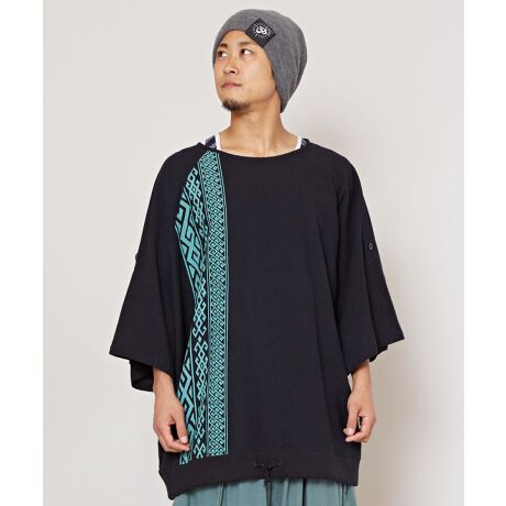 右サイドに入った幾何学柄が印象的なメンズトップス。
