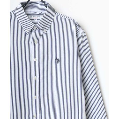 U.S. POLO ASSN./ユーエスポロアッスン 別注 オーバーサイズ ツイル 無地 ストライプ ワンポイント刺繍 ボタンダウンシャツ