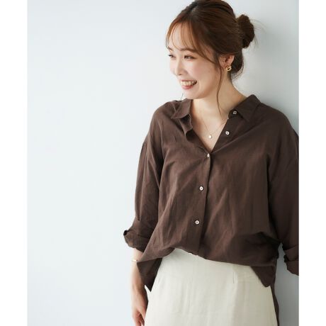 ルクールブラン定番の麻混素材のオーバーシャツ。