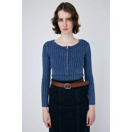 【STONE WASH ZIP UP KNIT CD】独特のビンテージライクなカラーが目を引くニットカーディガン。コンパクトなサイズ感で、ボートネックに仕上げることで、女性らしさの残るデザインにしました。フロントをジップアップにすることで、MOUSSYらしくかっこいい印象に。同素材で、キャミソールとドレスのお作りもございます。カーディガンは、同素材のキャミソールと合わせて着用していただくのがおすすめです。コットン100%でチクチクせず、毛玉が出来にくいので、デイリーに活躍できるアイテムです。※こちらの商品は、製品でストーンウォッシュ加工を施している為、色の濃淡(加工感)に個体差が生じます。