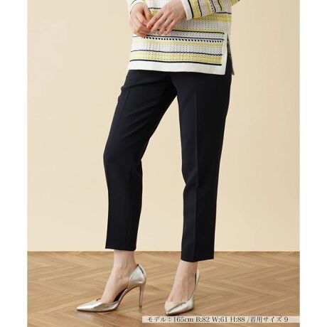 通勤やオフィシャルなシーンでもクリーンな印象に仕上がる、綺麗なテーパードシルエットを描くアンクルパンツ。伸縮性に優れたストレッチ生地を使用しているから、アクティブな動きにもしっかりと対応。シンプルな無地で様々なコーディネートに取り入れやすく、トレンドに左右されることなく、大人のワードローブの定番アイテムとして活躍してくれそうです。※関連商品【テーラードジャケット:0301177】【ジャケット:0301178】【スカート:0301184】------------------------------------初夏あり色によりありありやや薄手ウォッシャブル(手洗い可)なし後ろのみゴム-------------------------------------※商品の色味は、撮影場所や光のあたり具合、お客様のお使いの機器により色味が違って見える場合がございます。予めご了承ください。※定価(税込)は、2023年06月29日のセール開始前の店舗における販売価格です。