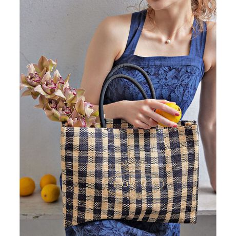 アフリカ大陸南東、西インド洋の島国マダガスカル島特産のラフィア素材を使った大き目トート。TOCCAオリジナルの柄・カラーで丁寧に手織りしたPOPで洗練された色鮮やかなラフィア素材に、上品なロゴディテールを刺繍。大人のリュクスな夏アイテムに仕上げました。とっても軽いので、デイリーのお買い物やお出かけなどマルチに活躍するバッグです。