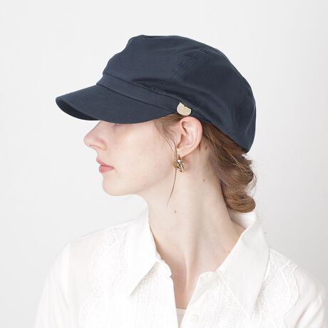 猫型のゴールドプレートがアクセントになった年間使えるキャスケットです。