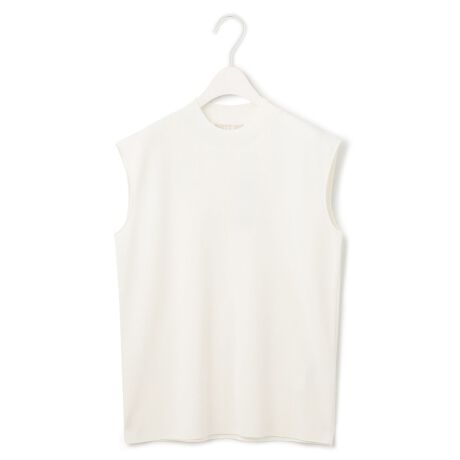 ■デザインスムース編みでふっくら表情をつけたモックネックのノースリーブプルオーバー。ハイゲージで編まれているので、目面がコンパクトで適度な光沢やしなやかさを持ち、上品で高級感ある佇まいになっています。肩まわりをきちんとカバーする様アームホールラインにも拘り、トリムは細く上品に仕上げました。無駄のないシルエットがミニマルな印象で、ジャケットのインナーとしてキレイ目なスタイリングにはもちろん、カジュアルシーンで一枚でもお召しいただける万能アイテムです。ドライタッチで清涼感あふれる風合いのため、夏の暑い時期でも快適に爽やかに着ていただけます。