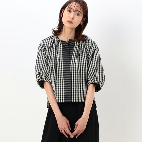 ゴムギャザーの寄せ方で、スクエアネックに見せるのがおすすめです。