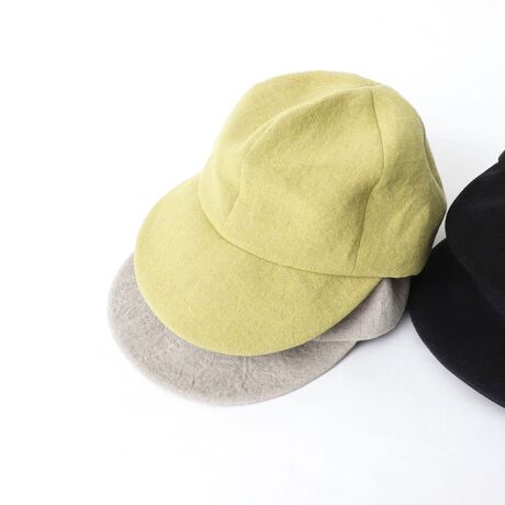 _キャップとキャスケットの中間にあたるサイズ感のリネンキャップ_
