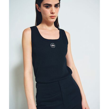 上質な素材・丁寧な縫製・普遍的でありながら今を感じる美しいシルエット。黒の持つ魅力を活かした”Noir de Class”スペシャルコレクションから、ワンポイントタンクトップが到着。ボディラインを拾いすぎない、しっかりした上質感のある太リブ仕立て。胸にオリジナルのレコードモチーフのエンブレムのワンポイントを添えた、シンプル過ぎない旬なデザインです。一枚着としてはもちろんのこと、ジャケットのインナー等にも便利にお使いいただけます。こちらは、手洗い可能な素材です。