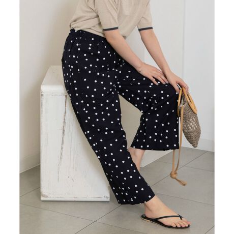 normesリネンレーヨン鳥ポケットワイドパンツ