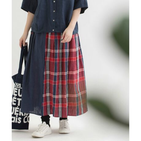 リネン先染チェック切り替えタックスカート