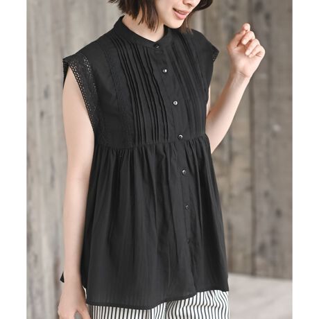 袖口には幅広レースをあしらった女性らしいフレンチスリーブになっています。