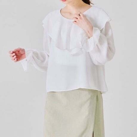 フワッと揺れるデザインが可愛いふんわりと柔らか素材の軽いブラウス。シワになりにくくVネックのスッキリした胸元もこれからの季節に最適です。