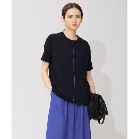 ■デザインラウンドシルエットの中にさり気なく入れたバックスリットが、エッジの効いた半袖のニットプルオーバーです。バックはヒップが隠れる丈で、バランス良く決まります。前身頃に入った配色ラインもさり気ないポイントです。※配色ラインはオフホワイト(002)はブラック、ライトオリーブ(053)はオフホワイト、コバルトグリーン(063)はブラック、ネイビー(075)はオフホワイトです。