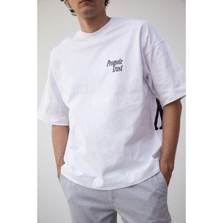 2023 Spring&Summer item ・ヨレにくくタフなヘビーウェイト素材を使用。 ・背中から腕にかけてのロゴがインパクトがあるTシャツです。 ・1サイズでゆったりシルエットとなっており、タイトなパンツでカジュアルに、ルーズなパンツでトレンドライクなスタイルになるデイリーユースなアイテムです。