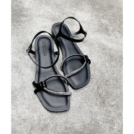 スマートなストラップデザインに華奢なストーンのデコレーションがさりげなく華やかに。