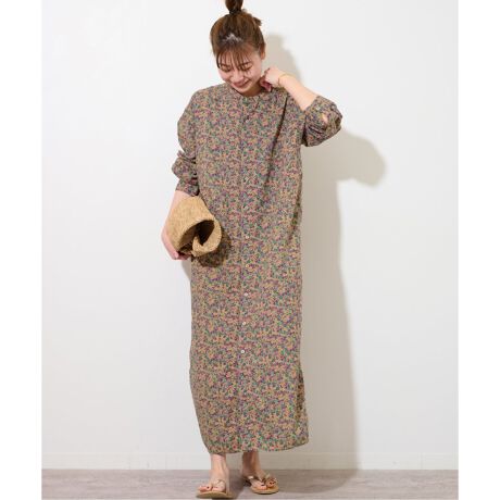 【ARMEN/アーメン】SMALL FLOWER バンドカラーMAXI OP:ワンピース