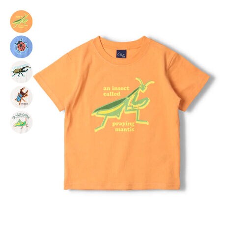 男の子に大人気の昆虫プリントシリーズ。デフォルメされた昆虫のイラストとロゴの組み合わせがポイント!カマキリ、てんとう虫、カブトムシ、クワガタ、バッタのプリント入り。(ベビーサイズのみ肩ボタン仕様になります。)【アイテム】トップス カジュアル お洒落 オシャレ かっこいい かわいい 可愛い 普段着 デイリーウェア お出かけ着 お外着 お外遊び着 子ども服 こども服 男児 男の子 ボーイズ キッズ ベビーサイズ トドラーサイズ 幼稚園 保育園 小学校 通園 通学 小学生 2023年夏物新作 丸高衣料 半袖 オレンジ ブルー 青色 オフホワイト 白色 テントウ虫 かぶと虫 甲虫 くわがた クレセント コットン100% 綿100%