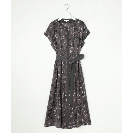 自由区オリジナルの柄プリントが華やかなワンピース■デザインしなやかなサテンジョーゼットの落ち感が女性らしい、ノーカラーのシャツワンピースです。ウエストにダーツとタックを入れつつ、程よいゆとりを持たせたゆったりとした着心地でありながら、すっきりとしたきれいなシルエットが魅力です。共のベルトでウエストマークして、よりきちんとしたコーディネートも可能です。前立ては比翼開きですが、ヒップラインから下は開かないデザインなので裾周りを気にせずに着て頂けます。ジャケットやカーディガンに合わせて通勤からデイリーまで活躍するワンピースです。■素材ポリエステルのしなやかなサテンジョーゼットに、ハーブの花をモチーフにした自由区オリジナル柄をプリントしました。縦に流れるような植物柄が大人っぽく、サテンジョーゼットの美しいドレープ性も相まって、華やかで大人っぽいプリント素材です。シワにもなりにくい点も魅力です。ネイビー系(075)は無地になります。■同シリーズアイテム8分袖ワンピース(OPWRSW0807)