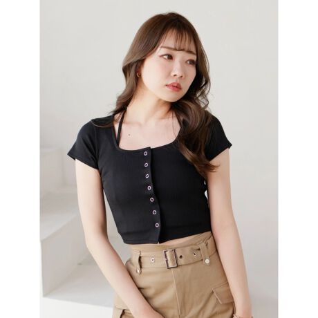 リングドットボタン×キャミソールのアンサンブルトップス。