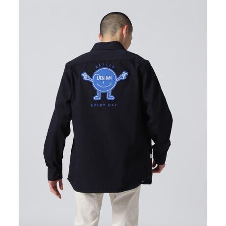 ピースサインをしたキャラクターがスタイリングのワンポイントになるオーバーシャツ。胸元にはさりげなく英字ロゴをあしらっています。トップスとしてはもちろん、羽織りのように着用するのもおすすめ。DENHAM/デンハム2008年にオランダ・アムステルダム誕生したDENHAM(デンハム)は、国際的にも名高いイギリス人のデニム職人ジェイソン・デンハムによって設立されました。ジェイソンは、サルトリアリズムとブリティッシュ・アナーキーを組み合わせることで有名であり、世間に高く評価されるイギリス人デザイナーJoe Casley - Hayford(ジョー ケイスリー ヘイフォード)のワークショップにて生地の裁断の腕を磨きました。「デンハムブランドは、デニムの伝統技術に対して強くリスペクトしながらも、積極的に新しいデザインを取り入れることを強く決意し、伝統と進化のバランスにフォーカスを当てています」デンハムのデザインチームは、全てのデニムに大胆不敵な実験や発明を取り入れ、「ジーンメイカー(デニム職人)」としての誠実なクラフトマンシップ精神を発揮するように努めています。それはデニムだけでなく、デンハムが展開する全てのラインとアイテムの生産についても同じくです。「私たちは顧客に対し、それを見たときに驚きで開いた口がふさがらない、そしてのどから手が出るほどのアイテムを用意しています。そういった魅力あるアイテムを作る唯一の方法は、私たち自身の中に嘘偽りのない唯一のバランスを創造し、現代的なディテールを発明し、近代的な姿勢をはっきりと表現することです」デニムに対してのジェイソンのひたむきな姿勢は、そのままブランドの主要なインスピレーションとなっています。
