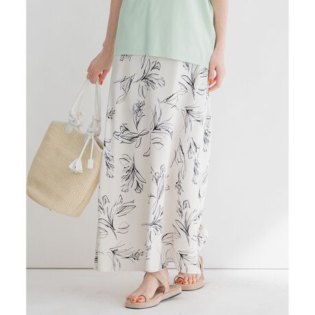 すっきりしたシルエットと、ラフなフラワープリントが大人見えするIラインスカート