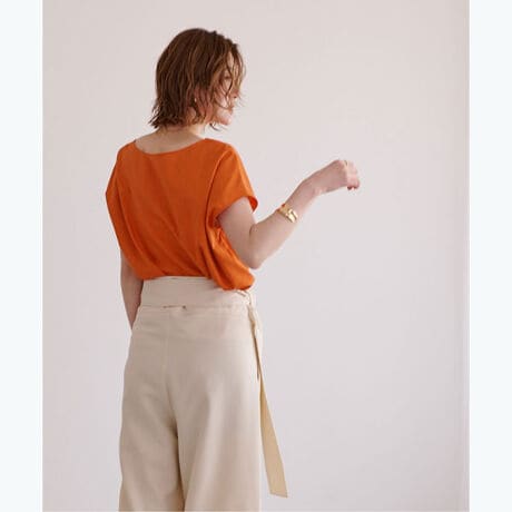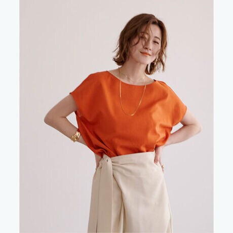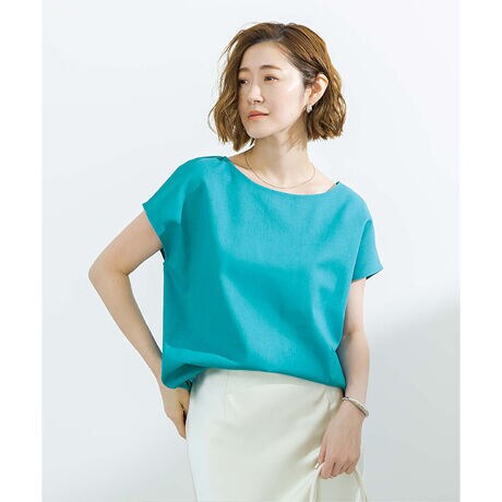 ボートネックで顔周りのすっきり見えが叶います。