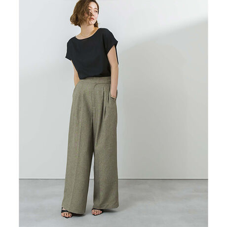 素材は麻っぽくサラリとしているのに、しわになりくく使いやすいです。