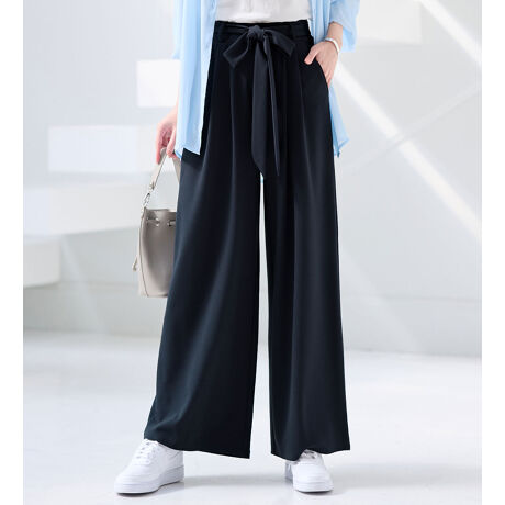 【4つの機能付】共布リボン付ワイドパンツ