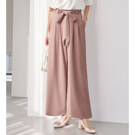 【4つの機能付】共布リボン付ワイドパンツ